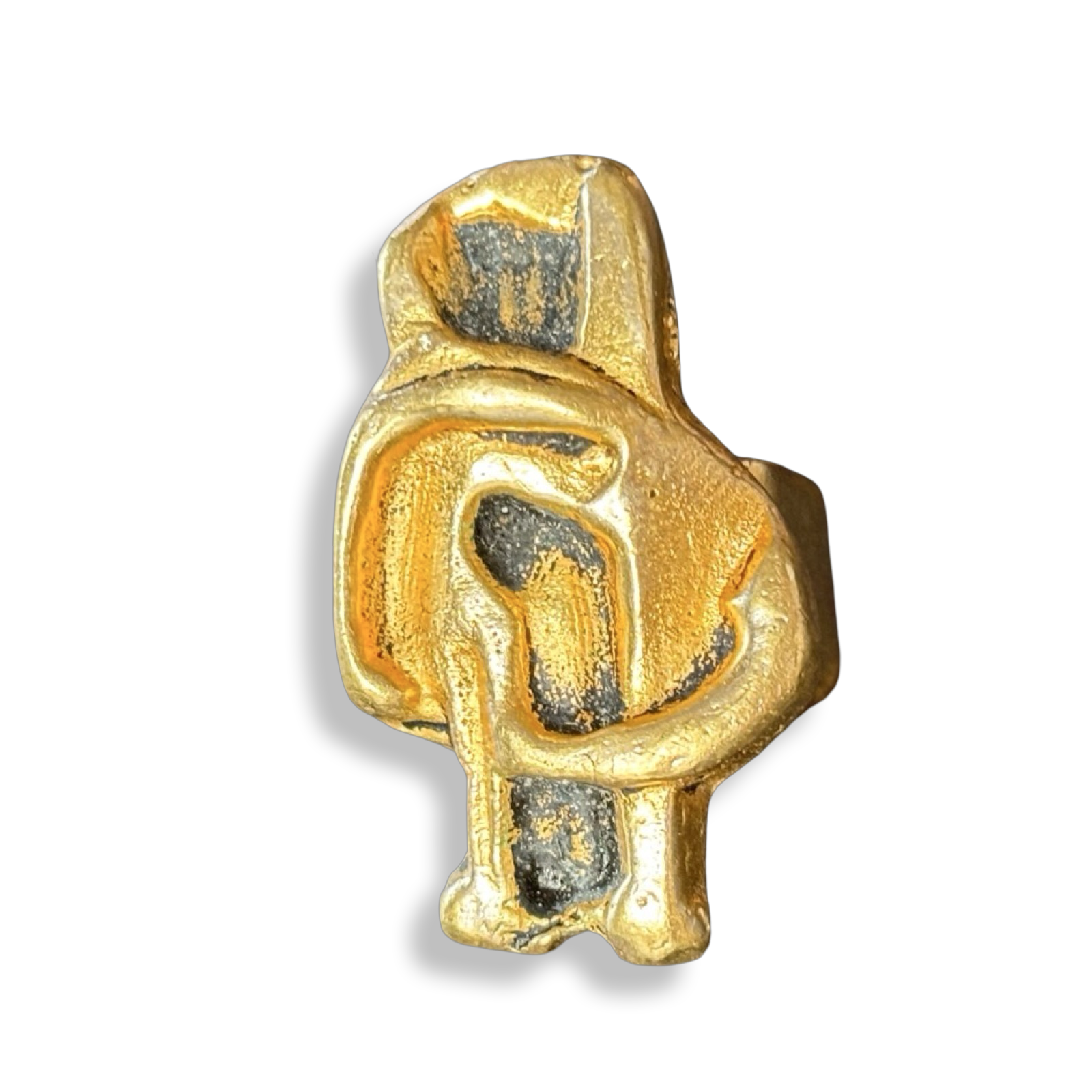 Bague en fonte vintage, années 90, créée par un artiste fondeur, issue d’un savoir-faire ancien. Sa matière lourde et texturée évoque l’authenticité des créations historiques, offrant une présence élégante au doigt tout en soulignant l’importance des matériaux robustes et durables du passé.