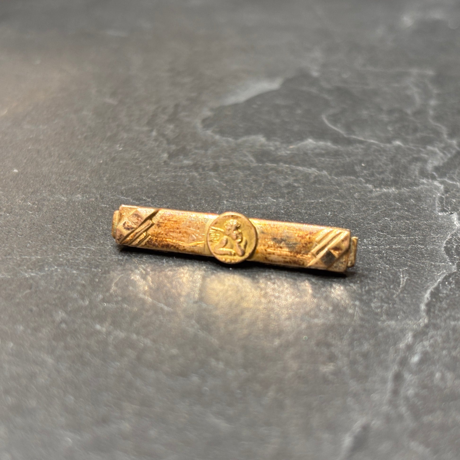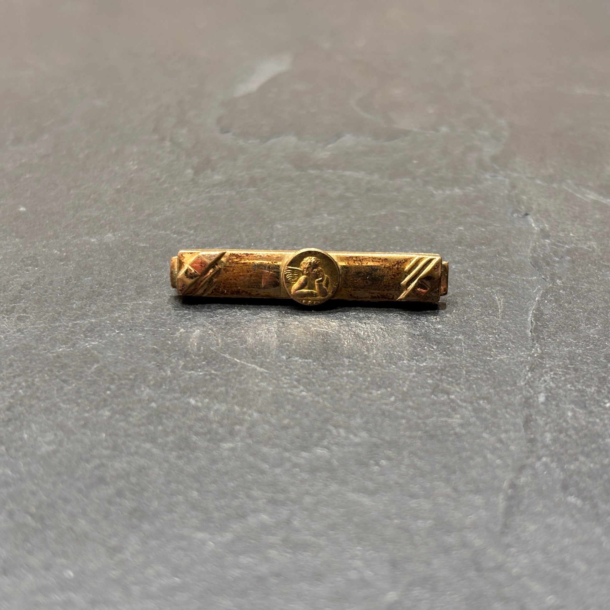 Magnifique broche vintage ancienne des années 30 représentant un ange délicat. Fabriquée en plaqué or, à une époque où les motifs symboliques étaient très prisés, cette pièce apporte une dimension poétique et intemporelle à vos accessoires de mode.