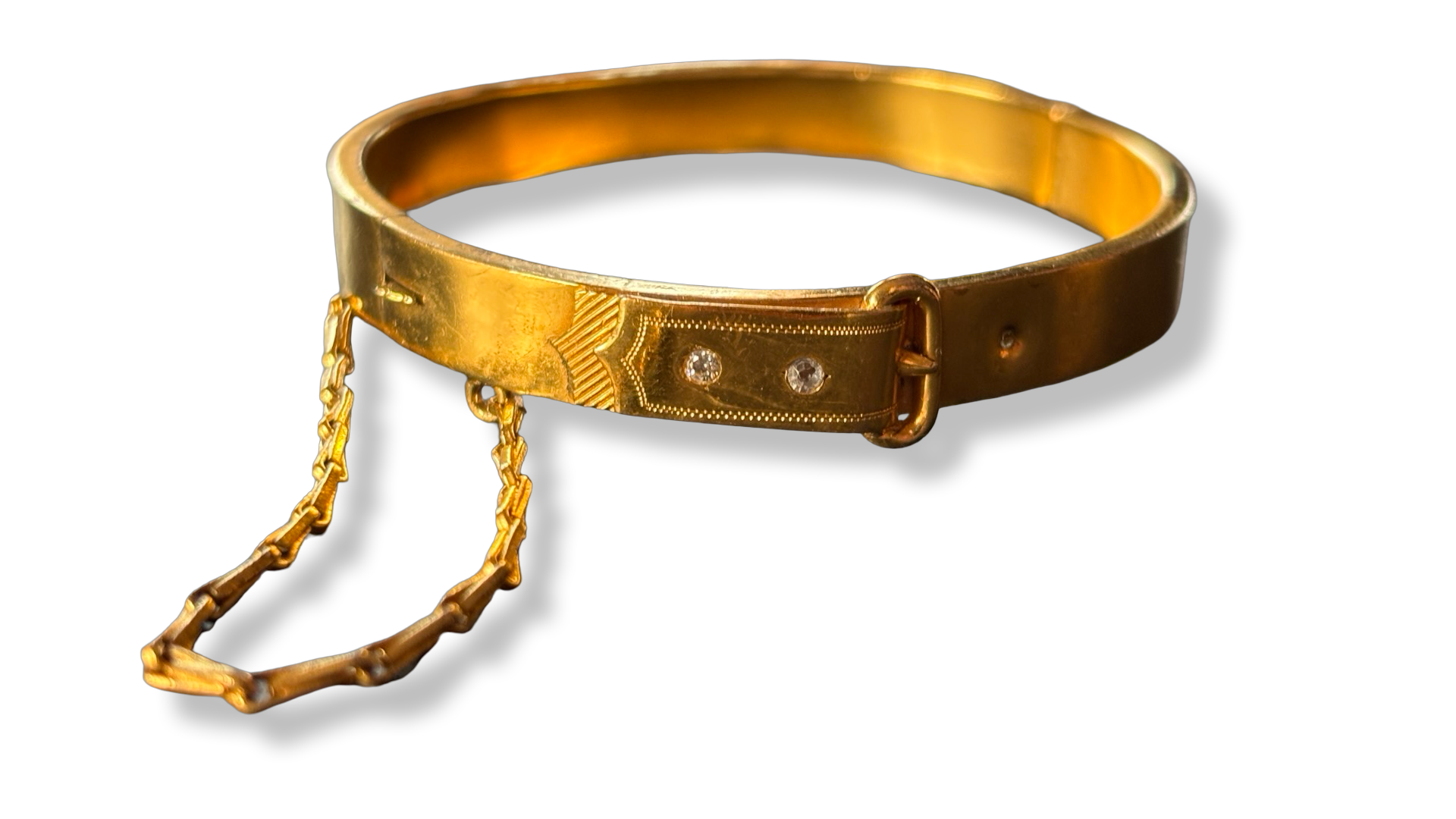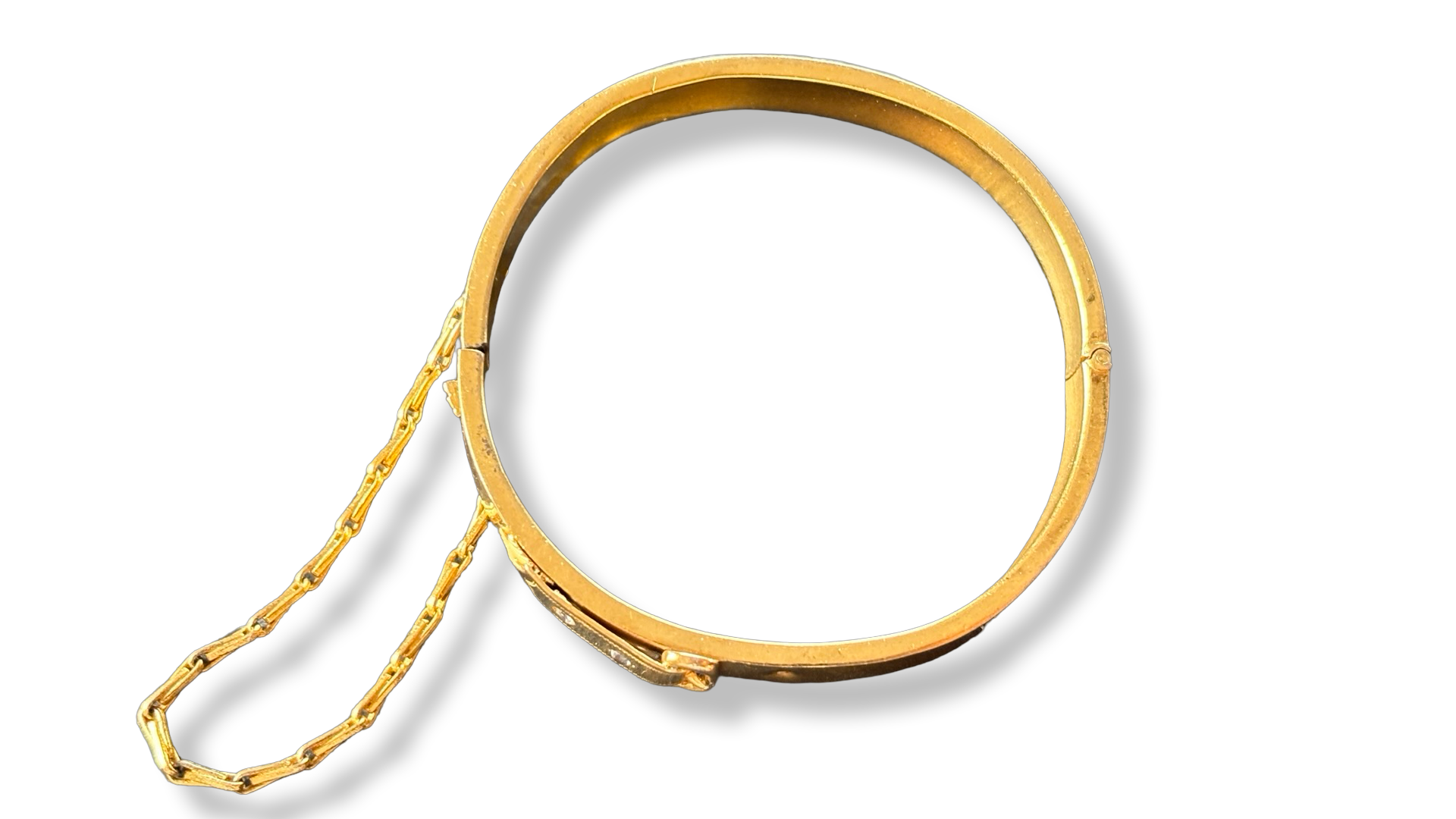 Jonc ancien plaqué or, début du 20e siècle, manifestant la noblesse d’un métal précieux associé à une fabrication d’époque. Ce bracelet vintage se distingue par sa patine subtile et son allure raffinée, symbole du savoir-faire traditionnel et de l’élégance intemporelle des bijoux anciens.