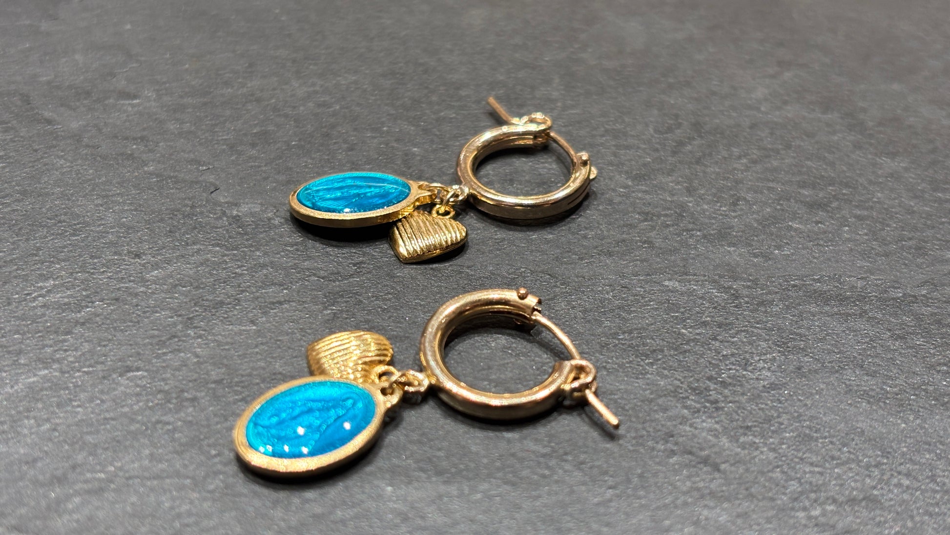 Mini créoles Médaille miraculeuse émaillée et cœur